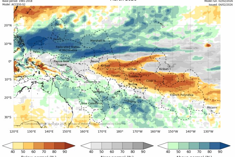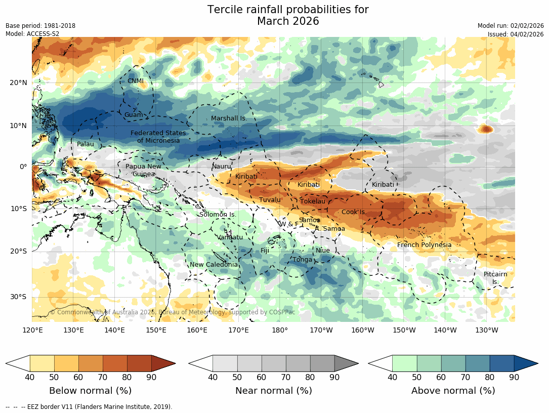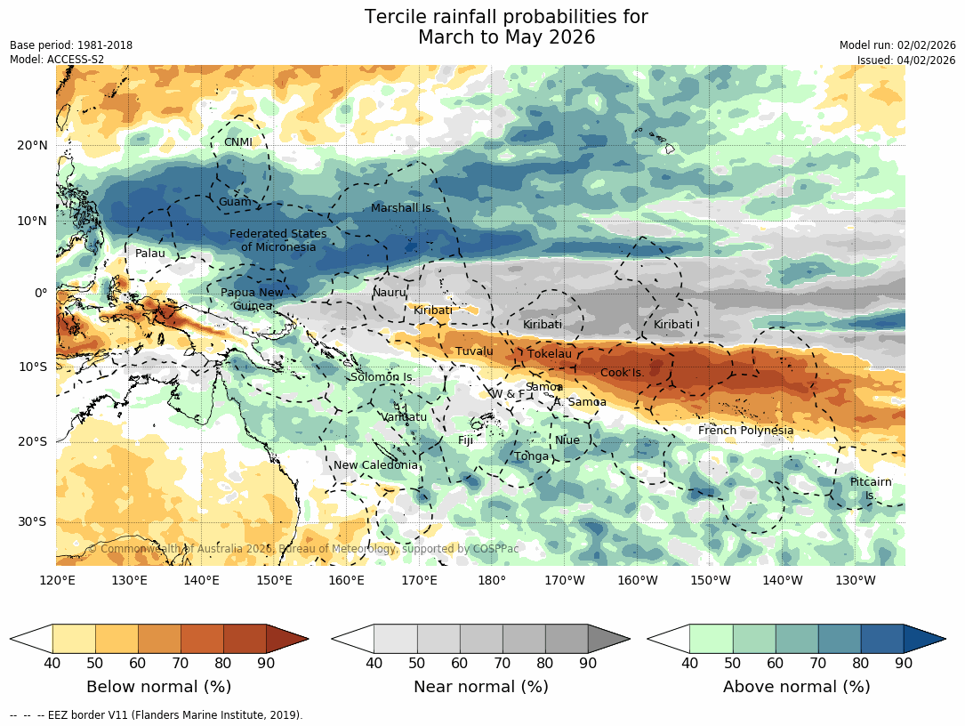 Submitted by silipam on 26 February 2026 OCOF Summary OCOF 221 Summary (2.56 MB) Fiji Fiji (1.84 MB) Kiribati Kiribati (1.6 MB) Marshall Islands RMI (1.56 MB) Niue Niue (996.3 KB) Samoa Samoa (837.61 KB) Tuvalu Tuvalu (1.18 MB) Tonga Tonga (1.24 MB) Vanuatu Vanuatu (1.36 MB) Rainfall Spatial Summary Image
